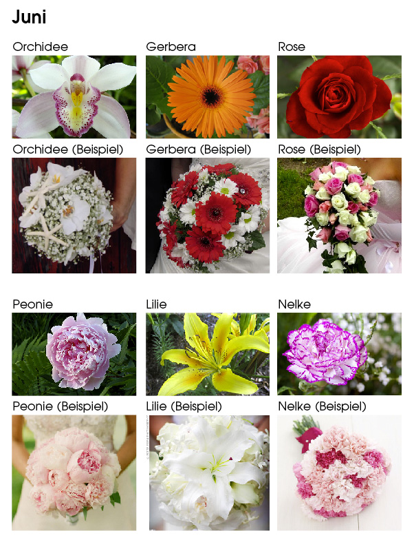 Juni: Orchidee Gerbera Rosen Peonie Lilie Nelke |
