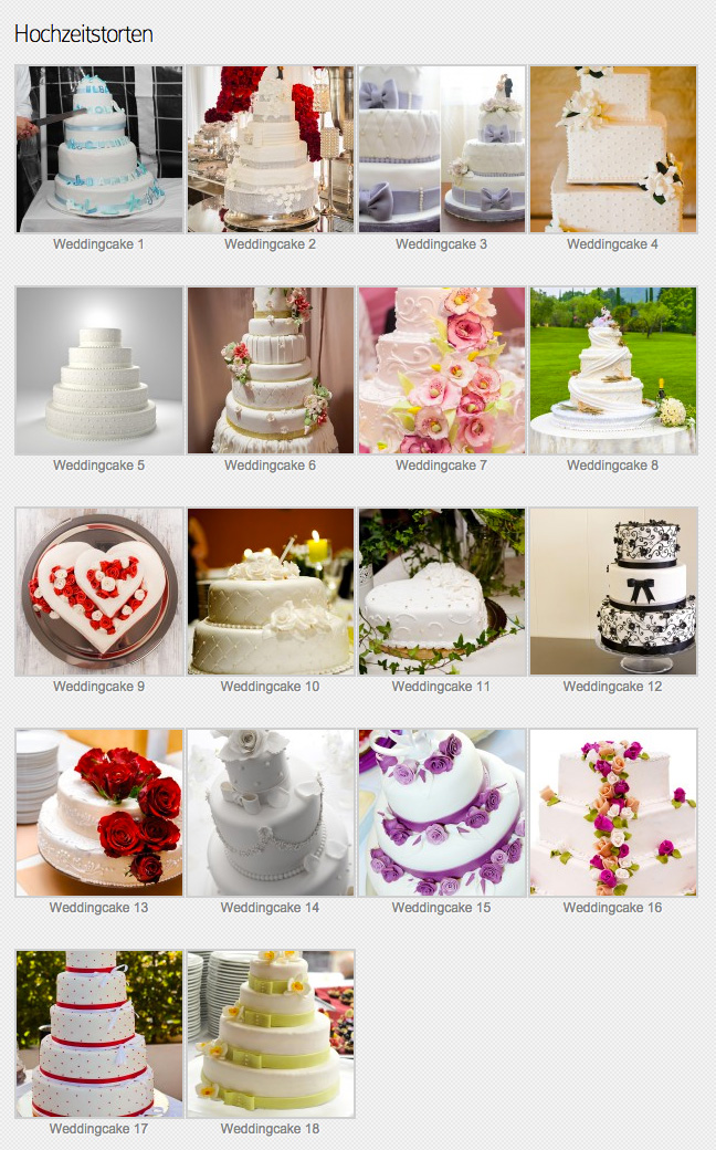 | Hochzeitstorte (siehe Hochzeitstortenbeispiele) |